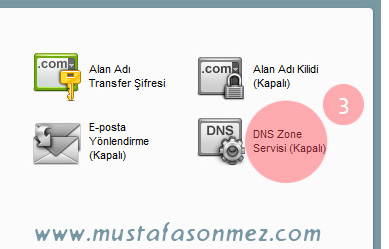 3) Açılan yeni sayfadan "DNS Zone" ayarları butonuna tıklayın. Burada kapalı olan ayarları ikona tıklayarak açacaksınız.